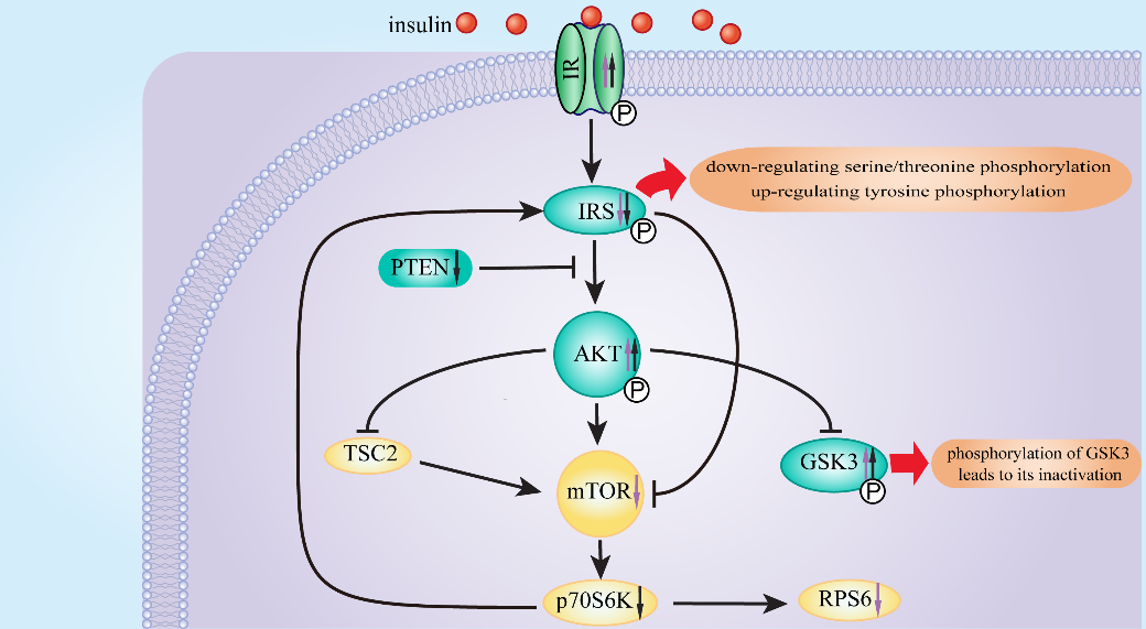 通過HepG2細胞胰島素抵抗模型,發現高良姜素和松屬素調節AKT/mTOR信號通路上的關鍵蛋白,改善HepG2細胞的胰島素抵抗。通過分子對接模擬實驗,確定了高良姜素和松屬素可以與胰島素受體發生結合,從而改變胰島素受體的構像,激發胰島素受體的敏感性,進而激活信號通路,改善胰島素抵抗。本論文為蜂膠產品的深度開發提供了理論依據。